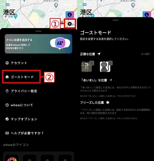 Whooの「ゴーストモード」とは、自分の現在地を特定の相手から隠すための機能です。しかし、一口にゴーストモードといっても、実は「あいまい」と「フリーズ」という2つの種類があるのをご存じでしょうか?